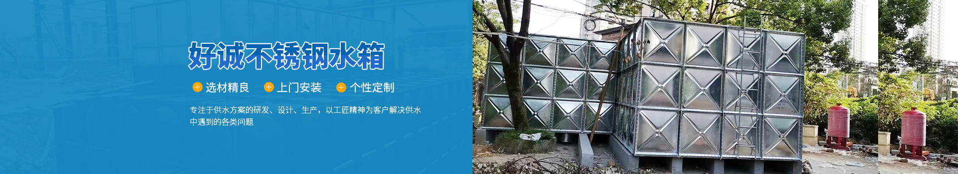 安徽好誠供水設備制造有限公司是一家集設計、研發(fā)、制造、銷售、售后為一體的專業(yè)不銹鋼水箱生產(chǎn)廠家,以科技力量立足于社會。近幾年來致力于供水設備、水箱的研究與開發(fā)。主要產(chǎn)品有:不銹鋼焊接式水箱、不銹鋼組合式水箱、BDF裝配式水箱、地埋式箱泵一體化設備、地上式箱泵一體化水箱、不銹鋼圓柱水箱、不銹鋼保溫水箱、SMC玻璃鋼水箱、熱鍍鋅水箱。對于傳統(tǒng)混凝土水箱的改造(即不銹鋼內(nèi)貼水箱),老舊水箱的拆除、更換、...